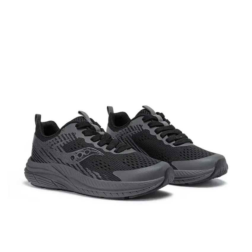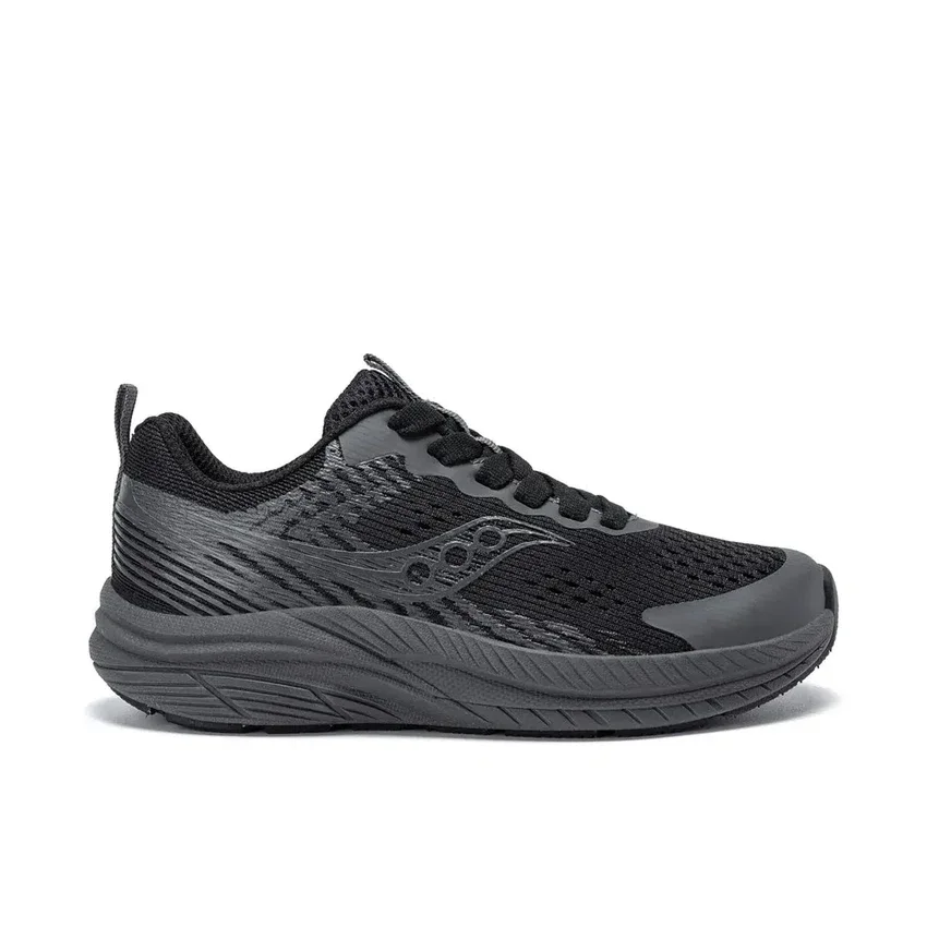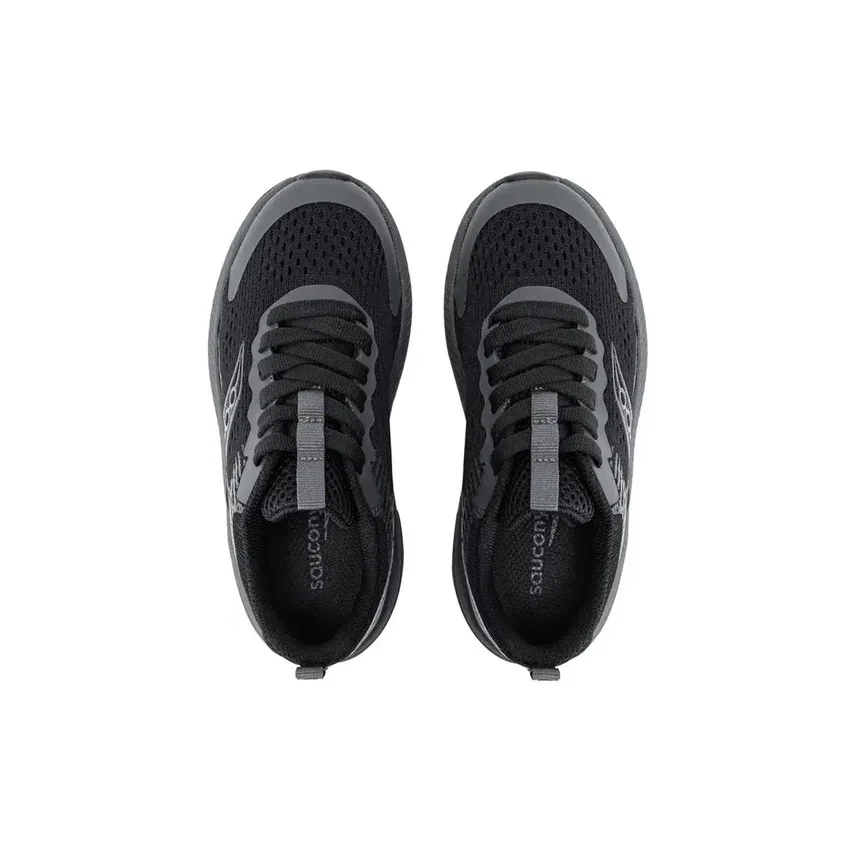 Big Kid’s Saucony Hurricane KDZ – breathable textile upper with secure heel fit, cushioned insole, broader base for stability and all‑day comfort.