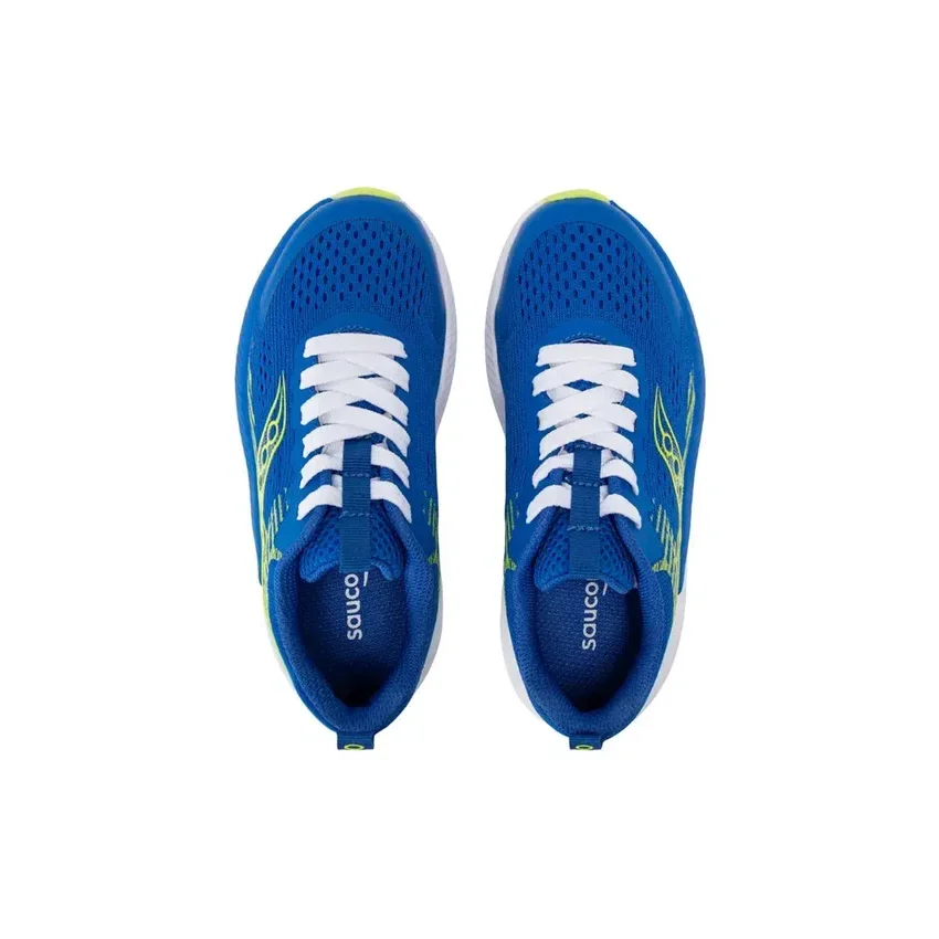 Big Kid’s Saucony Hurricane KDZ – breathable textile upper with secure heel fit, cushioned insole, broader base for stability and all‑day comfort.