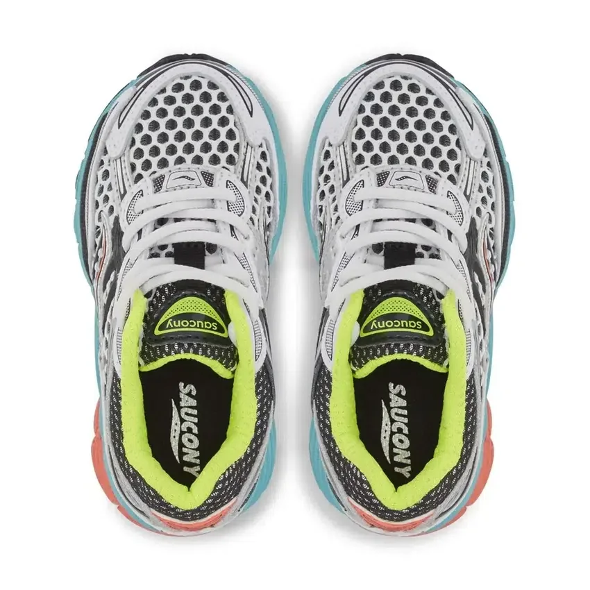 Saucony Omni 9 KDZ Little Kid’s: Supportive running shoe with Grid cushioning, durable outsole, and breathable mesh upper for active young runners.