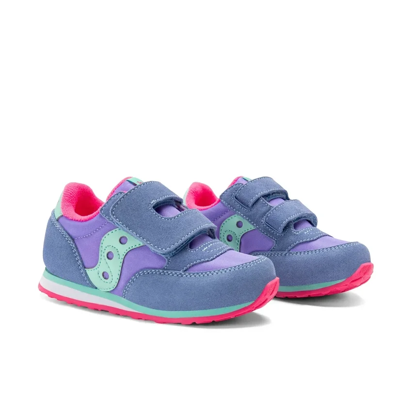 now you can have matching saucony originals with your mini-me. the baby jazz hook & loop is just as comfortable and cool, but in an array of fun kid-approved colors. the extended hook-and-loop strap ensure a full fit – even for wider feet.