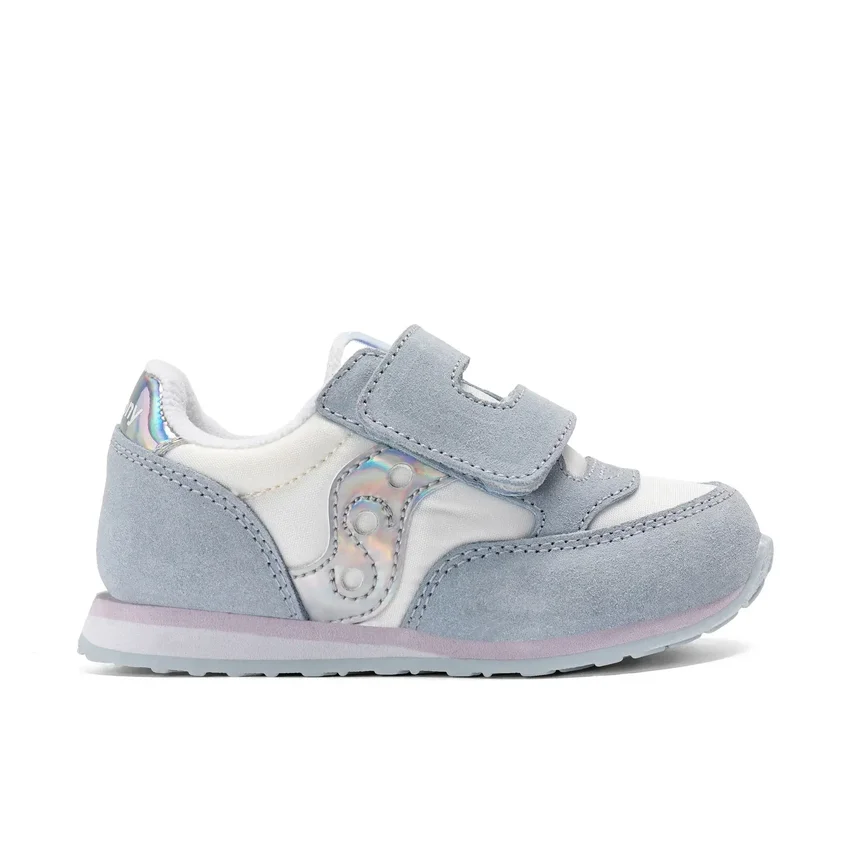 Baby’s first style: Saucony Baby Jazz Hook & Loop sneaker with easy-on strap, suede/mesh upper and cushy EVA midsole for growing feet.
