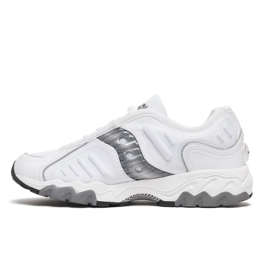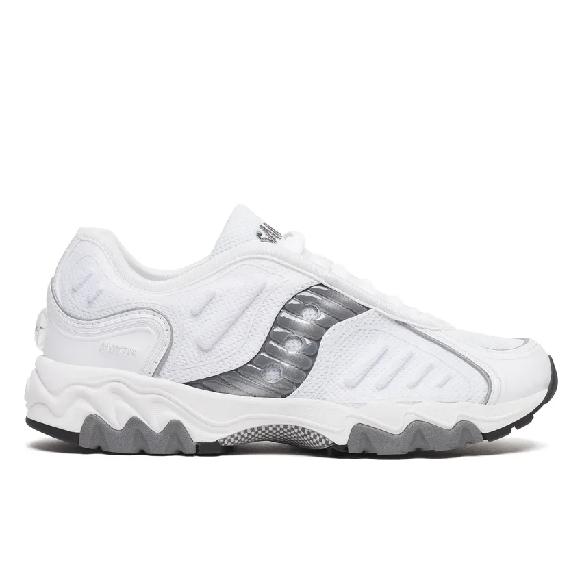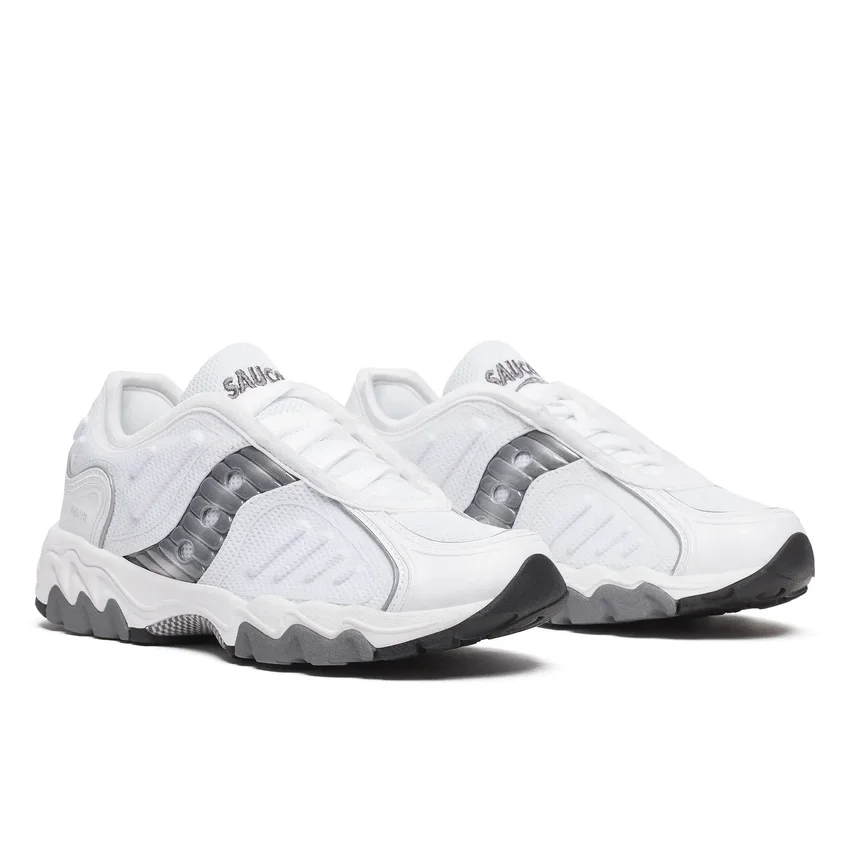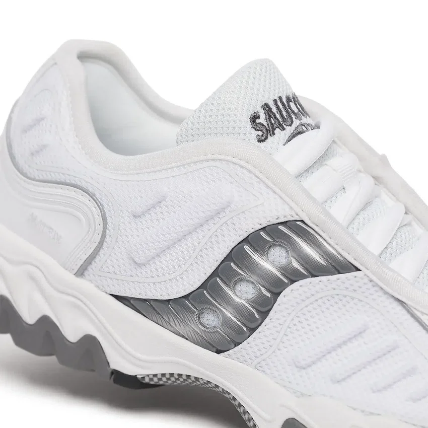 the matrix was designed in 1999 as our first release in y2k to answer the question, “is saucony a lifestyle brand or a performance brand?” featuring ultra modern materials and advanced grid technology but with classic branding and clean lines the answer was decidedly “yes”.