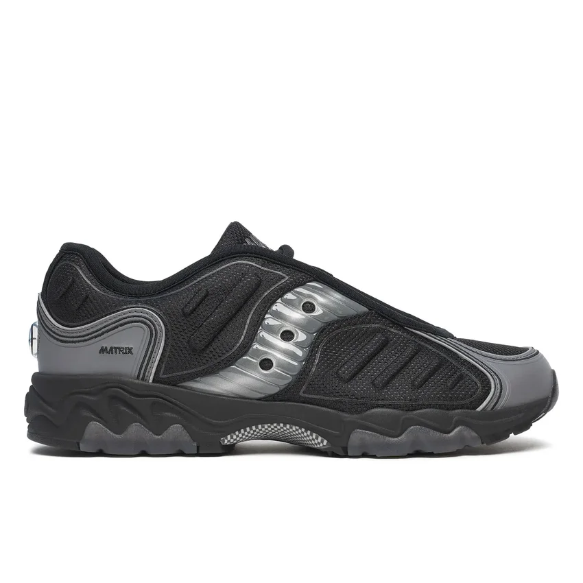 the matrix was designed in 1999 as our first release in y2k to answer the question, “is saucony a lifestyle brand or a performance brand?” featuring ultra modern materials and advanced grid technology but with classic branding and clean lines the answer was decidedly “yes”.