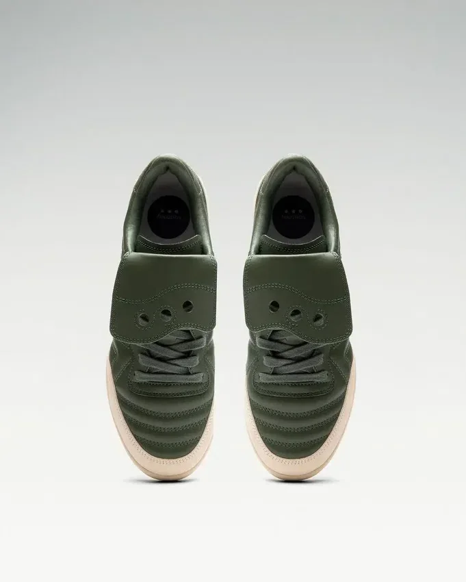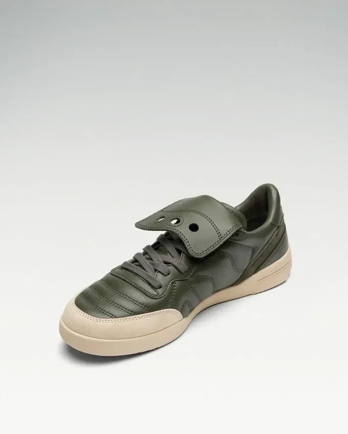 the saucony silo 586i forwards a piece of saucony’s unknown soccer history. enhanced with a bold two-tone full-grain and suede leather upper and considered textured double stitching. ortholite 33c sockliner foam adds underfoot comfort, a rubber xt-600 cupsole introduces durability and a prominent removable tongue is complete with a series of three instantly recognizable perforations. the effortlessly casual design steps forward refined abstract forms inspired by the blurring lines between fashion and the beautiful game.