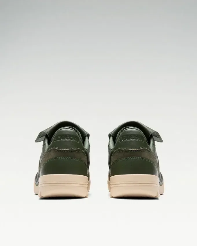 Saucony 586i S: Retro-inspired sneakers with full-grain and suede leather upper, removable tongue, and XT-600 rubber cupsole for durability and comfort.