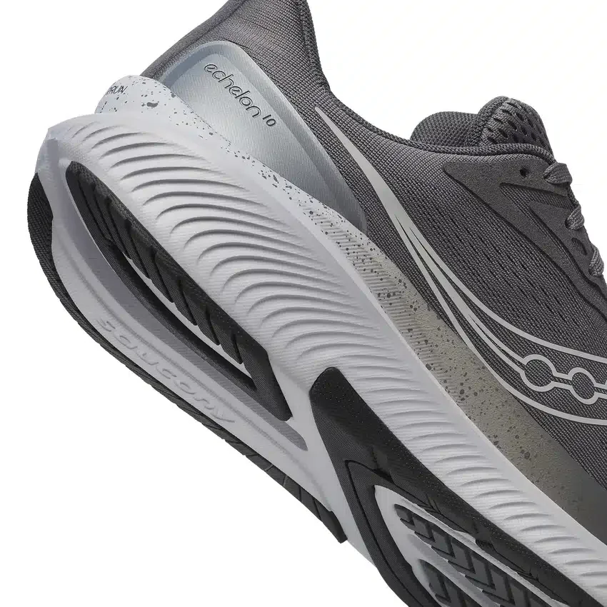 Saucony Echelon 10: broad, stable base with PWRRUN cushioning, XT‑900 rubber outsole and engineered mesh upper-ideal for everyday runs & walks.