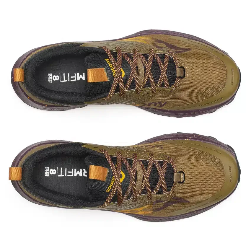 Saucony Ride TR2 Men’s: Versatile trail shoe with PWRRUN+ cushioning, 3.5mm lugs, and PWRTRAC outsole for grip on varied terrains.