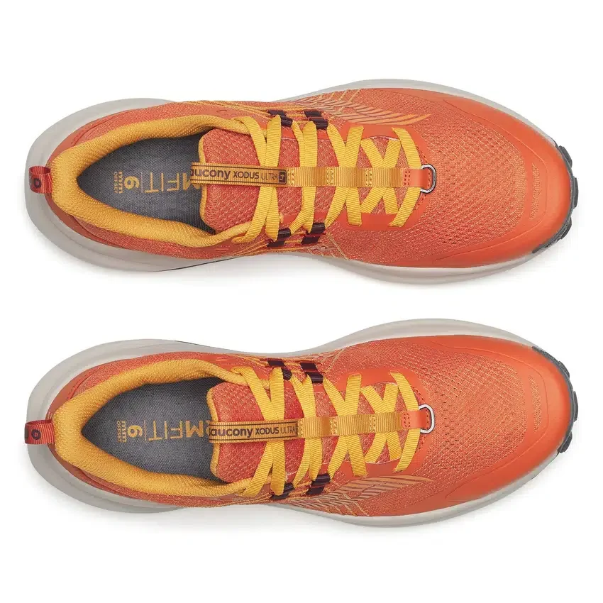 Saucony Xodus Ultra 4 Men’s: Max-cushioned trail running shoe with PWRRUN PB foam, Vibram® MegaGrip outsole, and breathable mesh upper for rugged terrains.