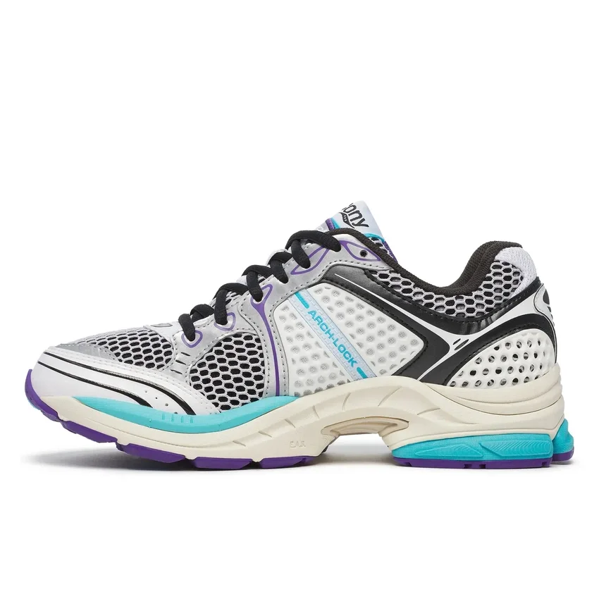 ProGrid Triumph 4: Retro-inspired running shoe with chrome leather overlays, Arch-lock support,and ProGrid cushioning for a responsive, cushioned ride.