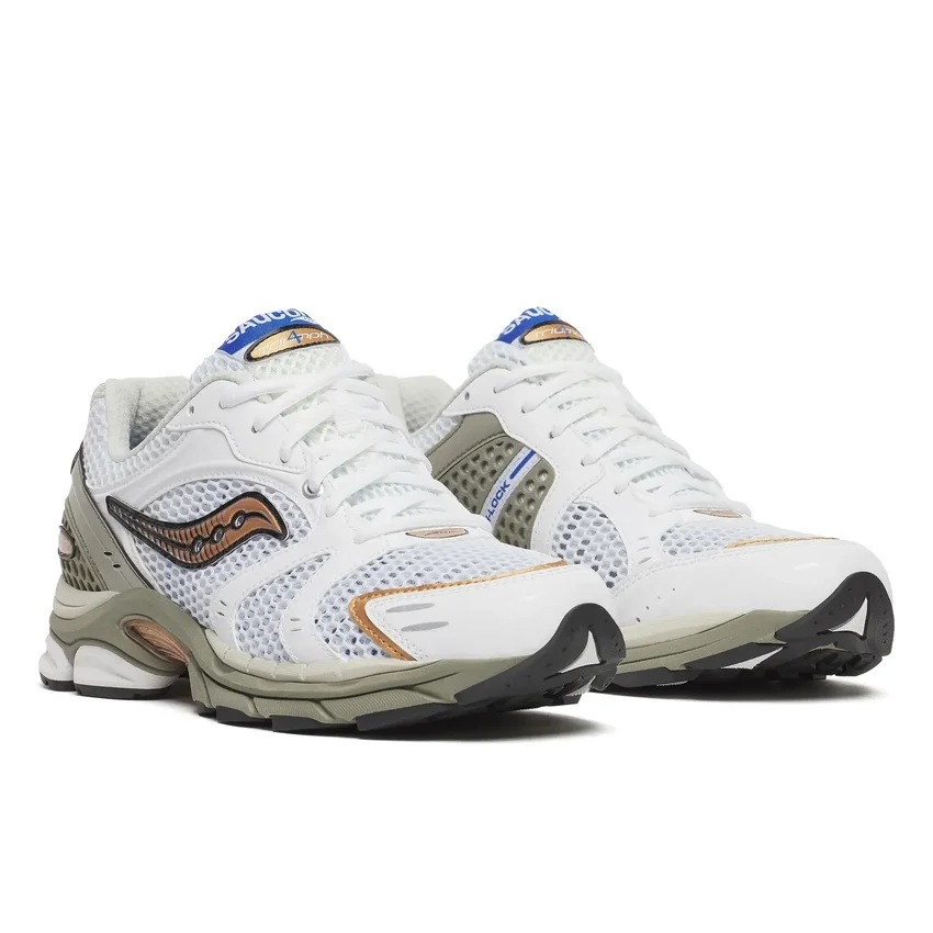 fusing performance with lifestyle functionality, the progrid triumph 4 features open mesh on the base, chrome leather overlays, a medial panel packed with arch-lock technology and progrid technology on the midsole. available in three colorways; the og yellow chrome and two new additions of black and white/silver, it’s a blast from the past with an eye for the future.