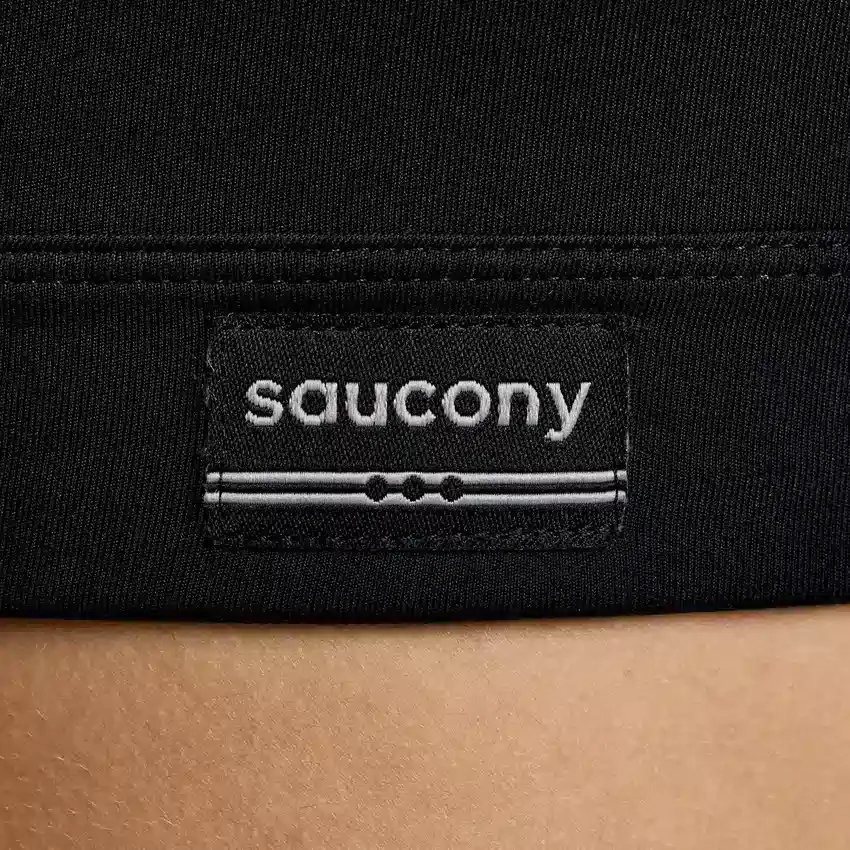 Women’s Saucony Fortify Bra: rib-knit recycled‑poly comfort, power‑mesh support, crossover back straps & reflective details for your daily run.