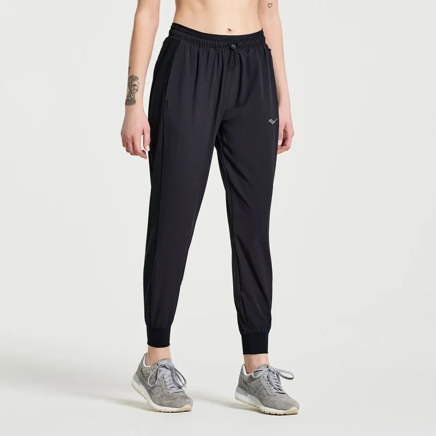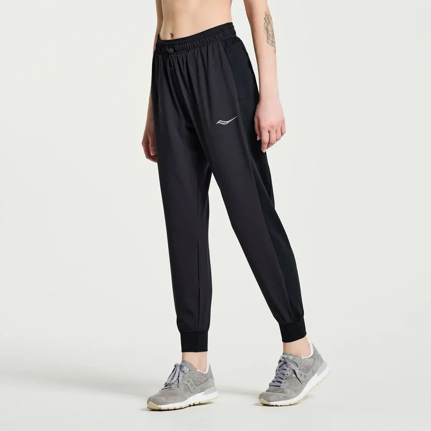 Women’s Boston Woven Pant: lightweight, mid‑rise active fit with recycled ripstop fabric, zip back pocket, bungee waistband & reflective details.