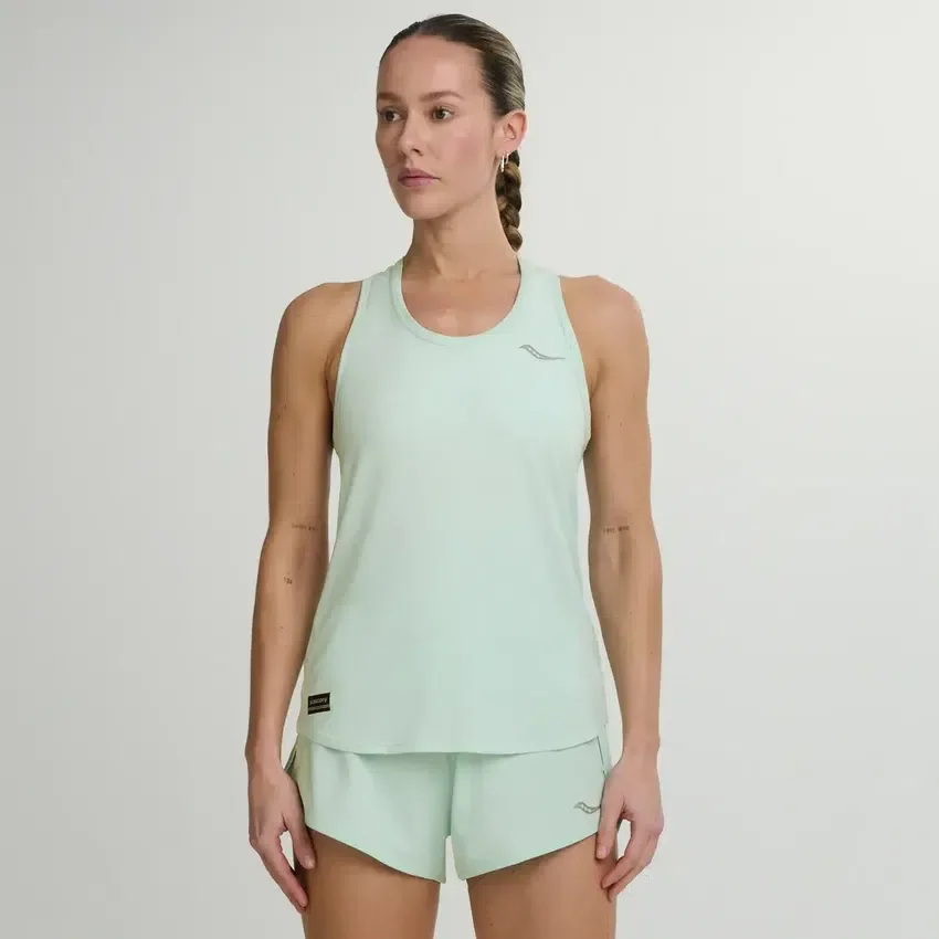 Saucony Stopwatch Singlet Women’s: Lightweight, breathable running top with racerback fit,recycled fabric,and reflective details for your best performance.