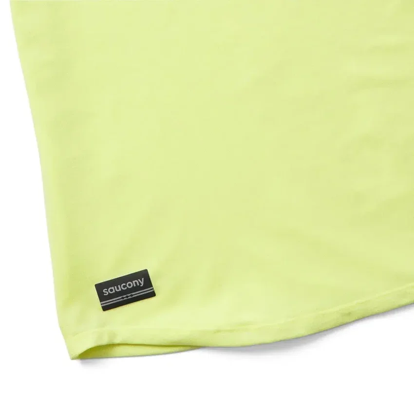 Stay cool and comfortable in the eco-friendly Saucony Stopwatch Short Sleeve-breathable, stretchy fabric made from 92% recycled polyester.