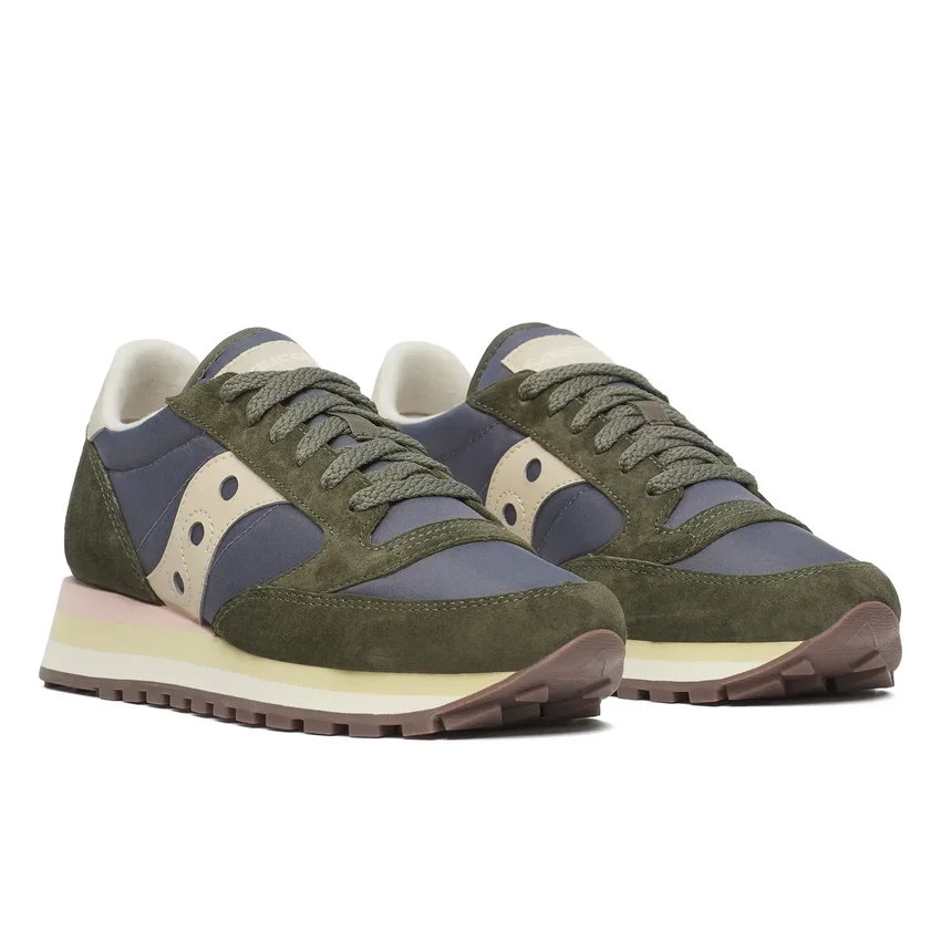 Jazz Triple Women’s: Retro-inspired sneakers with elevated midsole, suede and nylon upper, and bold colorways for a stylish and comfortable everyday look.